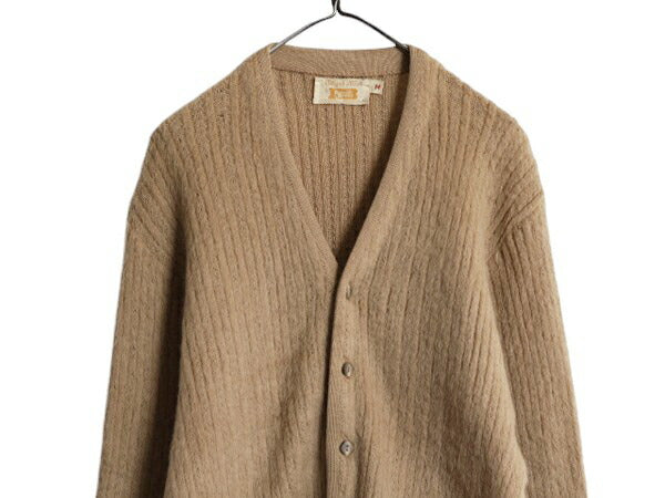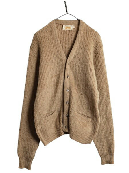 60s ★ ROBERT BRUCE モヘア ニット カーディガン メンズ M / 60年代 ヴィンテージ ウール セーター 毛足 毛長 シャギー 前開き ベージュ
