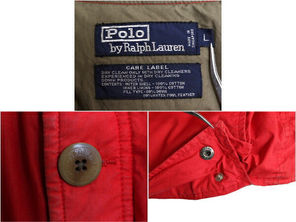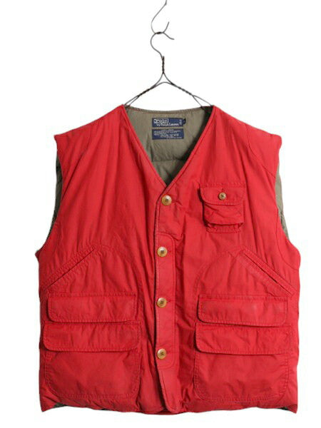 90s ★ ポロ ラルフローレン ハンティング タイプ コットン ダウン ベスト メンズ L / 90年代 オールド 前開き 重ね着 アウトドア 赤 無地