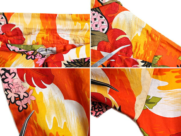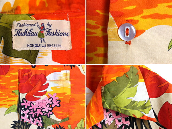 70s ★ Hukilau コットン オープンカラー 半袖 アロハ シャツ ( メンズ M 程) 70年代 ビンテージ ハワイアン 開襟 ボックス ポケット付き
