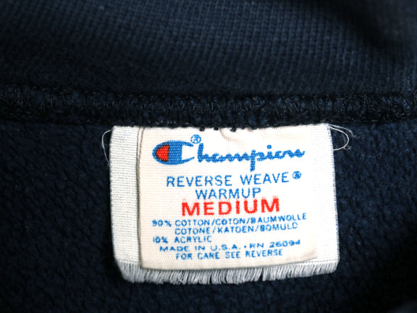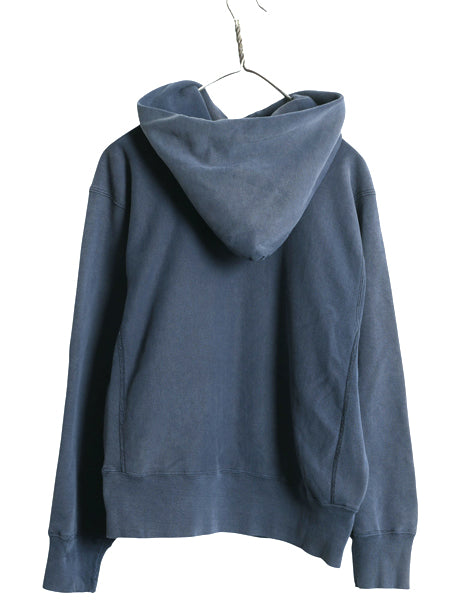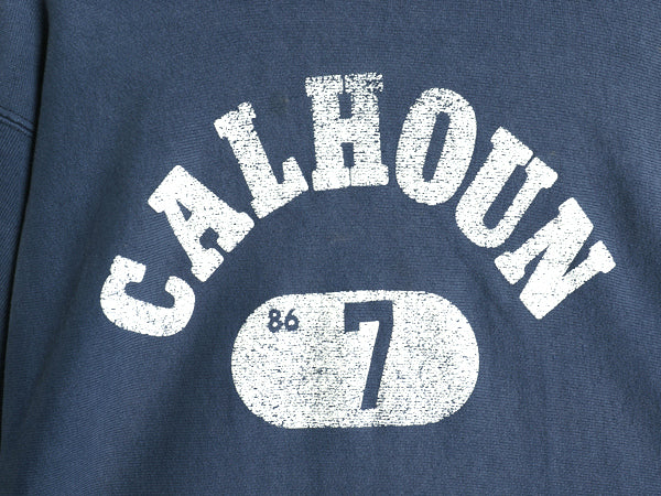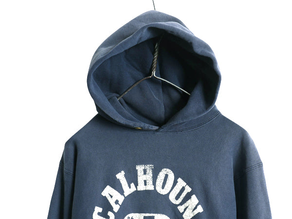 80s USA製 ★ チャンピオン リバースウィーブ 2段 プリント スウェット パーカー メンズ M オールド トレーナー 裏起毛 カレッジ フード 紺