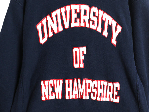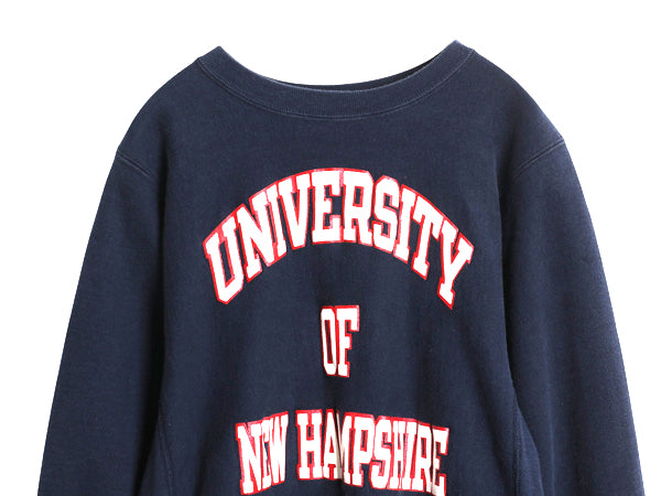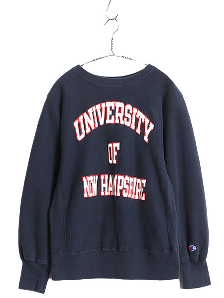 80s USA製 ★ チャンピオン リバースウィーブ 3段 カレッジ プリント スウェット メンズ M 古着 ヴィンテージ トレーナー 裏起毛 ネイビー