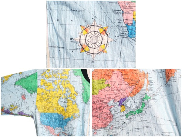ボディ全体に大胆な世界地図の総柄プリント入り