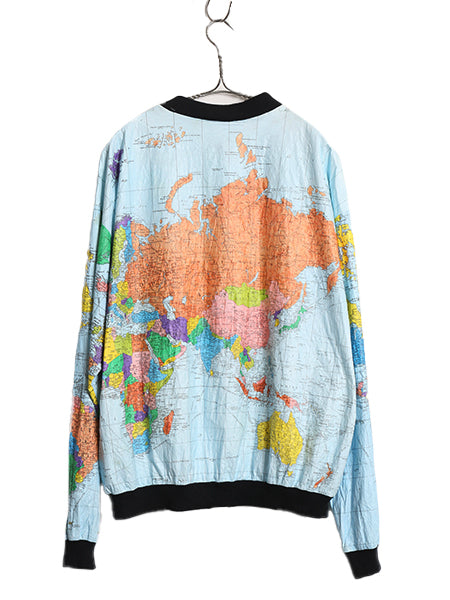 90s USA製 ★ 世界地図 総柄 ペーパー ジャケット メンズ L / オールド 当時物 フルジップ 紙ジャケ ブルゾン ポケット付き マルチカラー