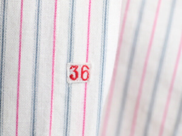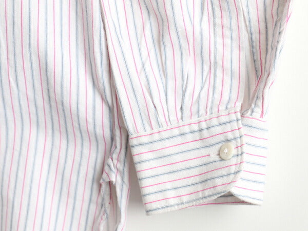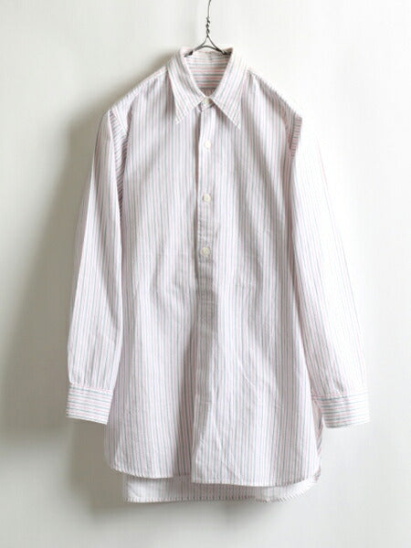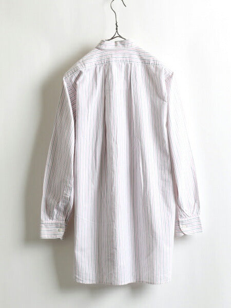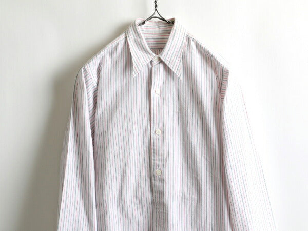 ★ ビンテージ フレンチ ストライプ 柄 コットン 長袖 プルオーバー シャツ ( メンズ 男性 36 S~M程 ) ホワイト ブルー レッド 古着 USED