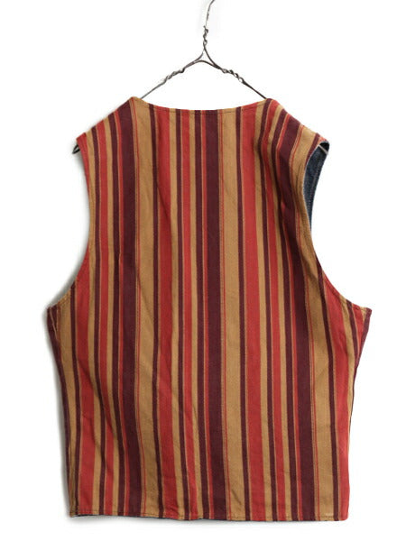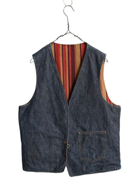 60s 70s USA製 ★ リーバイス リバーシブル ベスト メンズ M / 古着 ヴィンテージ Levis BIG E インディゴ ストライプ デニム ポケット付き
