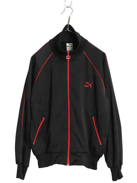 80s ★ プーマ トラック ジャケット メンズ M 古着 ヴィンテージ ジャージ ハイネック フルジップ ポケット付き ライン入り ブルゾン 黒 赤