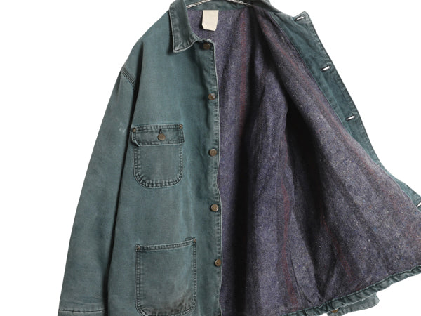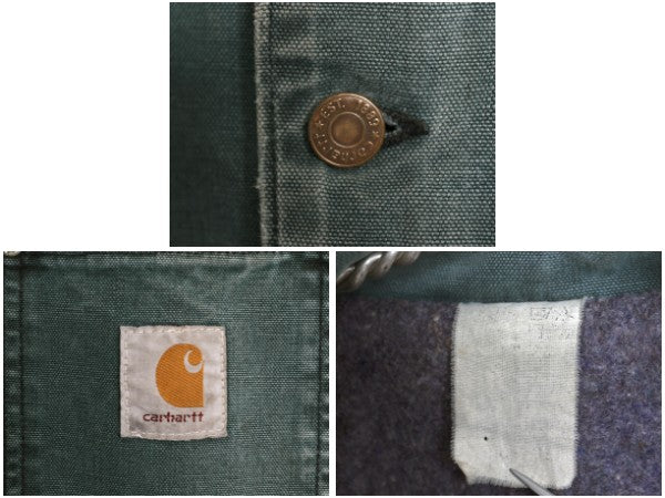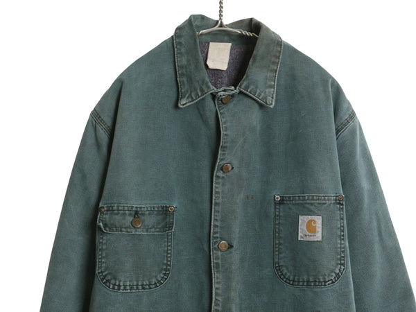 90s USA製 ★ カーハート チョア コート メンズ L 程/ ダック カバーオール ジャケット ブランケット ライナー付き ハンター グリーン 廃盤