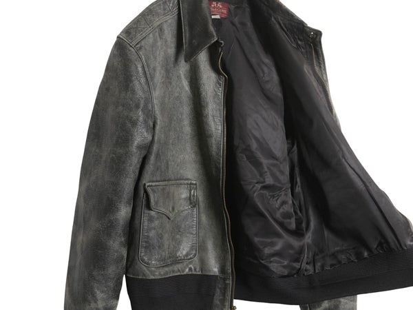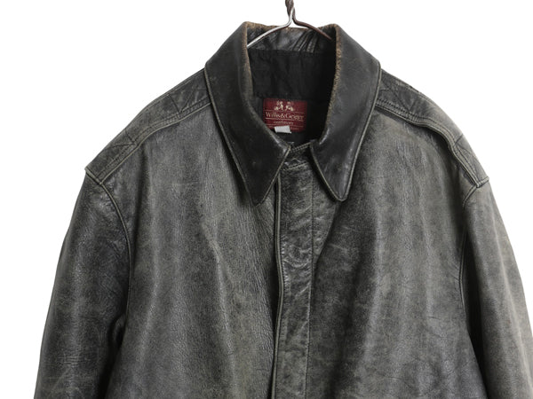 80s USA製 ★ ウィリス&ガイガー A-2 フライト ジャケット 42 メンズ L 程/ ヴィンテージ 本革 レザー 革ジャン ボンバー ホースハイド 黒