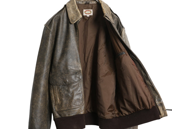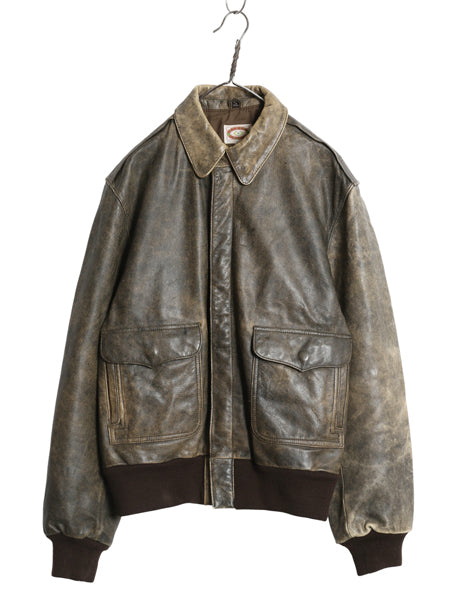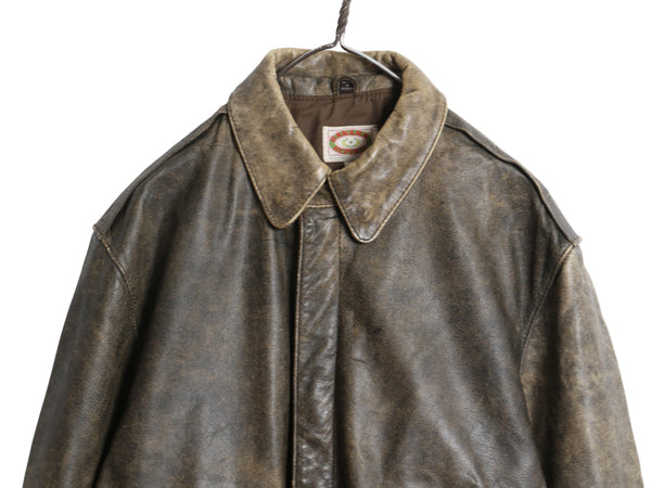 80s ★ バナナリパブリック A-2 タイプ 本革 レザー フライト ジャケット 42 メンズ L 程/ 古着 ヴィンテージ 旧タグ 革ジャン ボンバー 茶