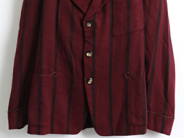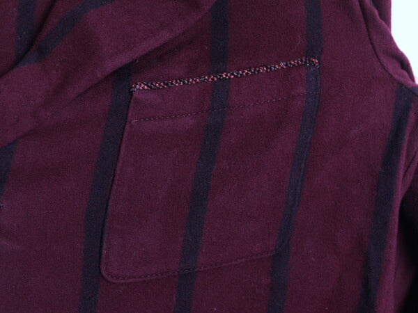 着やすい薄手のウール生地で濃いエンジにブラックのストライプが入ってます。
