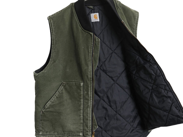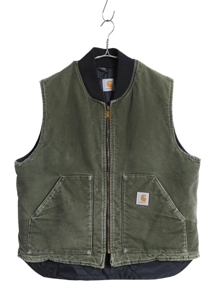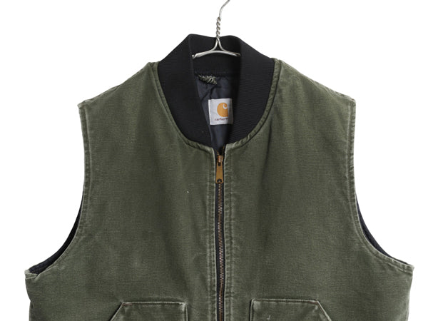 90s USA製 ★ カーハート 中綿 ダック ベスト メンズ XL 程/ オールド フルジップ 腰ゴム ナイロン キルティング ライナー 大きいサイズ 緑