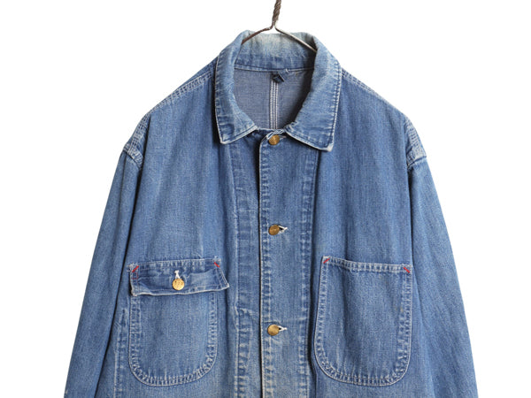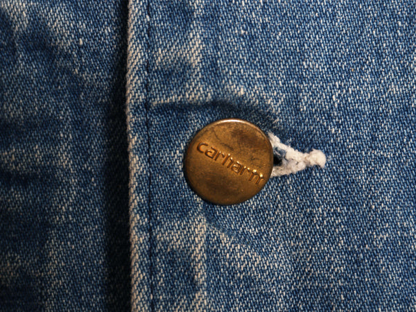 80s USA製 ★ カーハート デニム カバーオール ジャケット メンズ L 程/ 古着 ヴィンテージ ワーク チョア コート 薄手 ガチャポケ 廃盤 8C