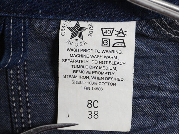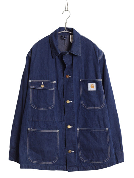 90s USA製 ★ カーハート デニム カバーオール ジャケット 38 メンズ M 程/ 古着 オールド ワーク チョア コート ガチャポケ 濃紺 廃盤 8C
