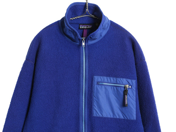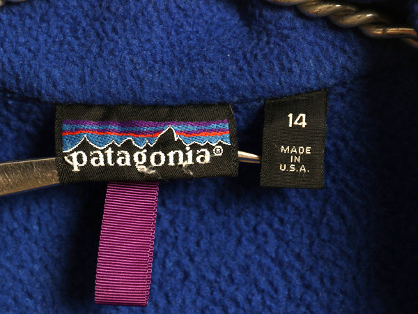 90s USA製 ★ パタゴニア フルジップ フリース ジャケット 14 レディース L メンズ M 程/ 90年製 オールド アウトドア ジャンパー 青 廃盤