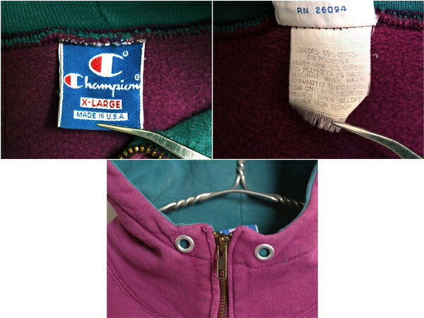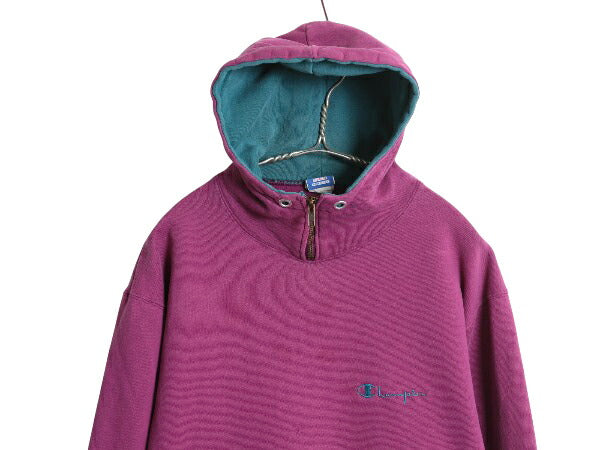 90s USA製 ★ チャンピオン ハーフジップ スウェット パーカー メンズ XL / オールド ヘビーウェイト ハイネック プルオーバー ツートン 紫