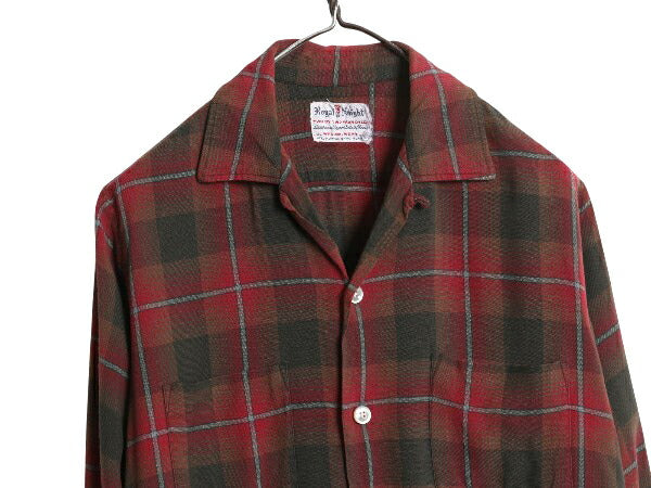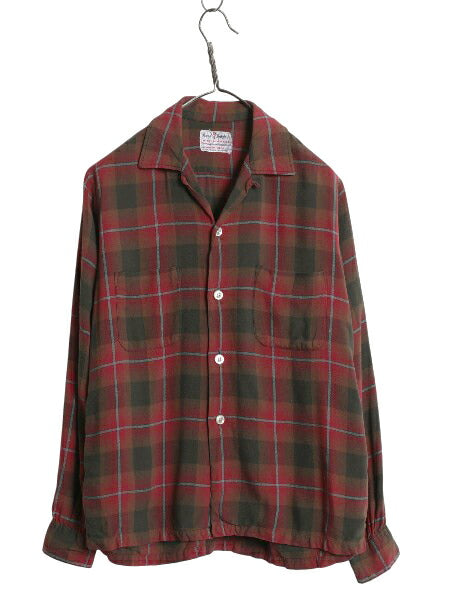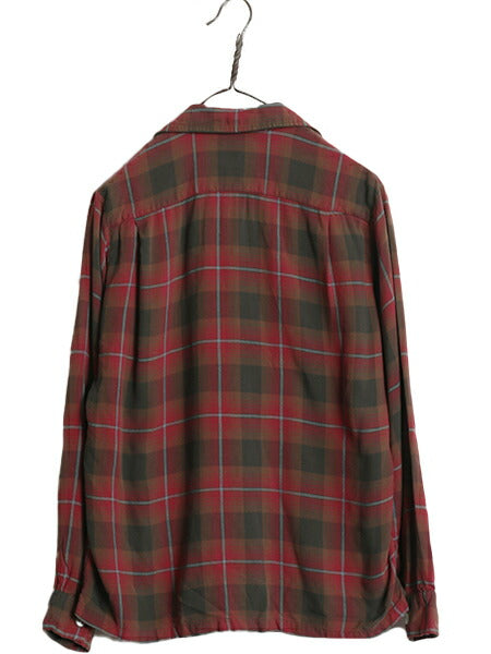 60s ★ チェック レーヨン オープンカラー 長袖 シャツ メンズ M 古着 ヴィンテージ ループ留め 開襟 ボックス ポケット付き マルチカラー