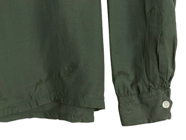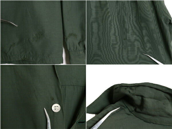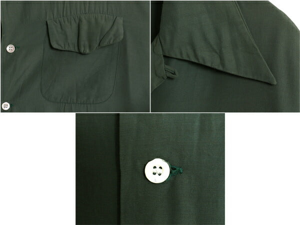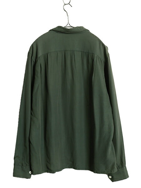 40s ★ レーヨン オープンカラー シャツ メンズ 16 L / 古着 ヴィンテージ ループ留め 開襟 ボックス 長袖シャツ フラップポケット 無地 緑