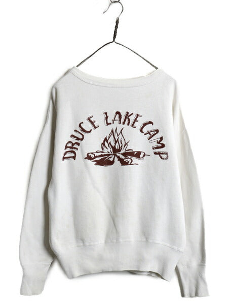 50s USA製 ★ チャンピオン 2段 プリント スウェット メンズ M / 古着 小文字 ランタグ ヴィンテージ 裏起毛 100% コットン トレーナー 白
