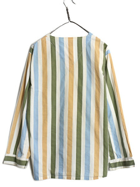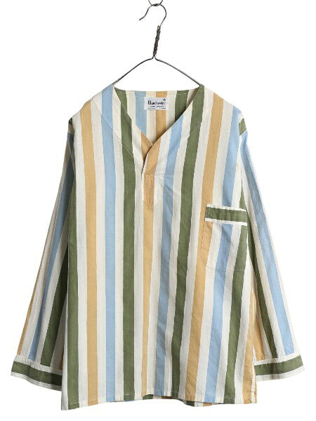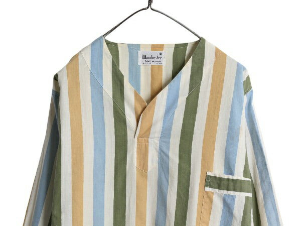 60s ★ Manchester ストライプ パジャマ シャツ メンズ M 程/ ヴィンテージ コットン プルオーバー ノーカラー スリーピング マルチカラー