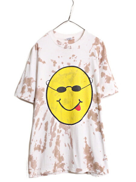 90s USA製 ★ スマイル イラスト プリント タイダイ Tシャツ メンズ XL 古着 90年代 キャラクター サイケデリック ニコちゃん 大きいサイズ