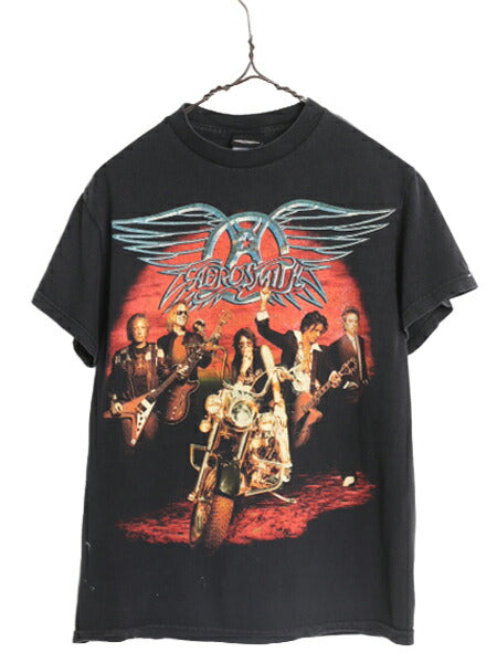 00s ★ エアロスミス プリント Tシャツ メンズ S 黒 古着 00年代 オールド AEROSMITH イラスト ロゴ バンド ロック ブラック オフィシャル