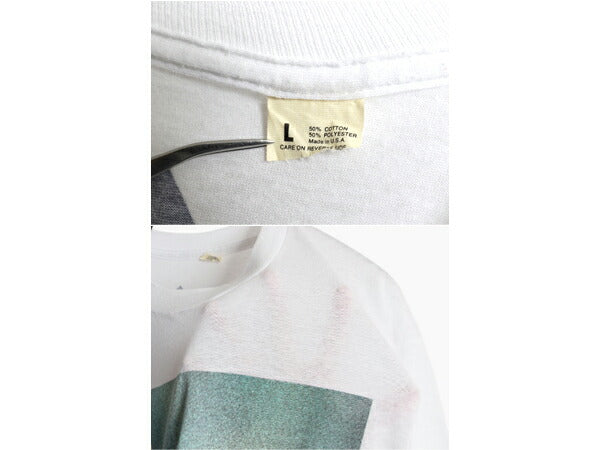 90s USA製 ★ ビリージョエル ツアー イラスト プリント Tシャツ メンズ L / 古着 オールド バンド 当時物 シングルステッチ ヤンキース 白