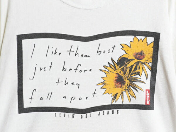 90s USA製 ★ リーバイス ひまわり アート イラスト プリント Tシャツ メンズ M 程/ オールド メッセージ アヴェドン シングルステッチ 白