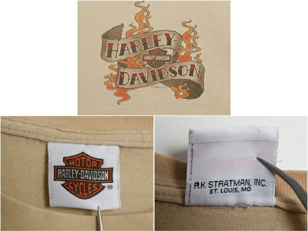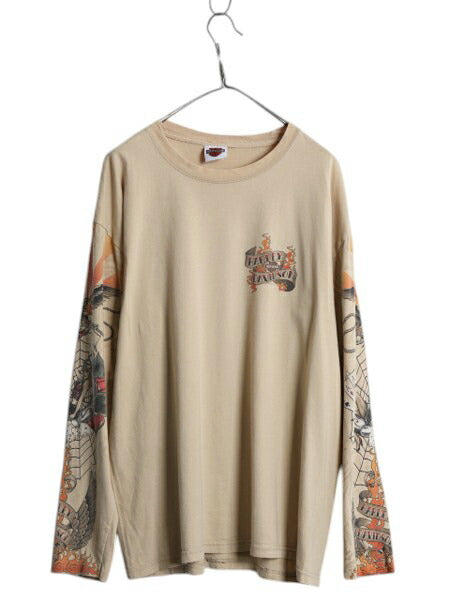 00s ★ ハーレー ダビッドソン イラスト プリント 長袖 Tシャツ メンズ XL~ / オールド ロンT バイク イーグル ファイヤー スパイダーウェブ