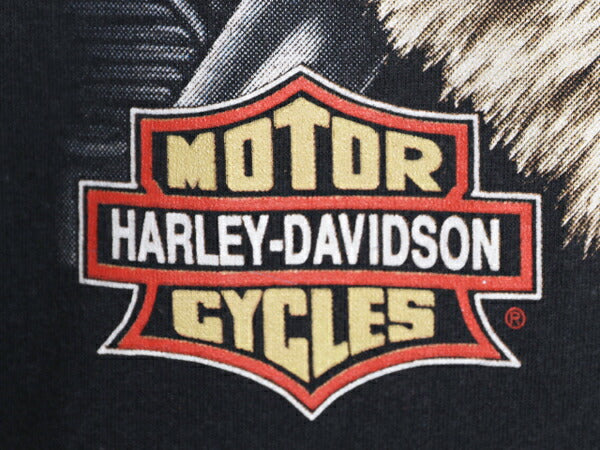 90s USA製 ★ 3Dエンブレム ハーレー ダビッドソン ウルフ プリント Tシャツ メンズ XL~ / 古着 オールド オフィシャル バイク アニマル 黒