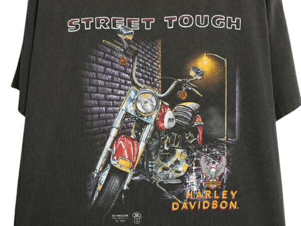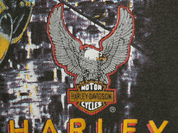 90s USA製 ★ 3Dエンブレム ハーレー ダビッドソン イラスト プリント Tシャツ メンズ L / 古着 オールド オフィシャル バイク アート 黒