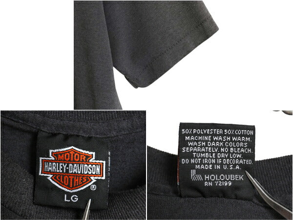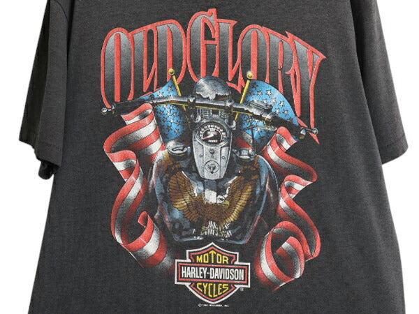 90s USA製 ★ ハーレー ダビッドソン イラスト プリント Tシャツ メンズ L 古着 オールド オフィシャル バイク 星条旗 イーグル アート 黒