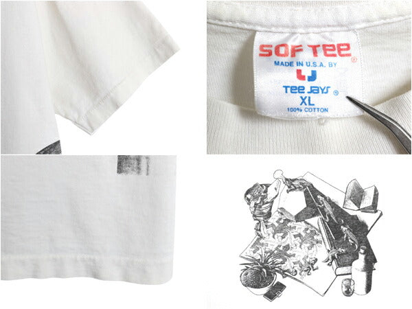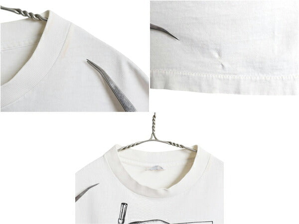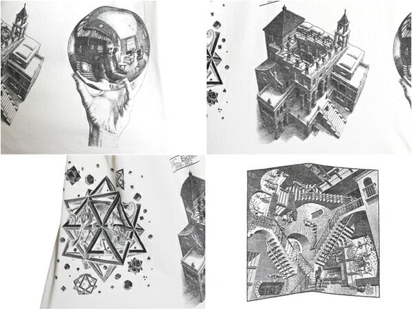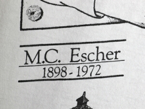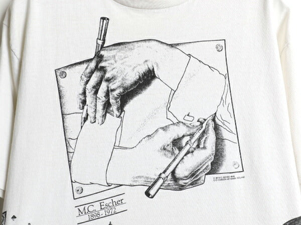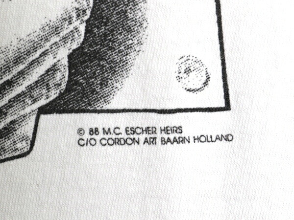 80s USA製 ★ エッシャー アート イラスト プリント Tシャツ メンズ XL~ ヴィンテージ 当時物 オフィシャル 芸術 だまし絵 グラフィック 白
