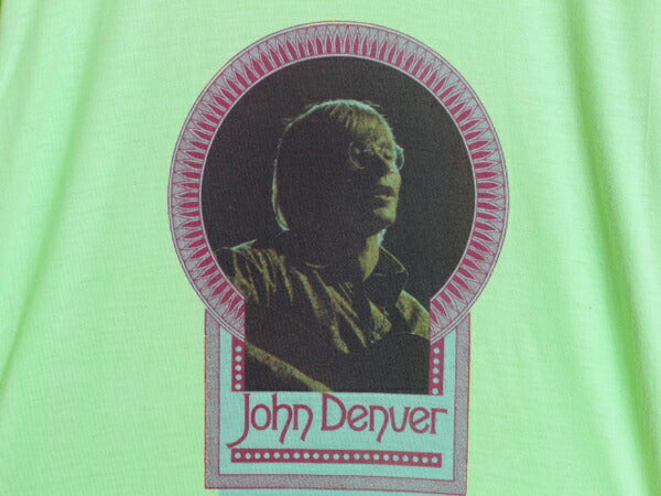 70s USA製 ★ ジョンデンバー フォト イラスト プリント Tシャツ メンズ L 小さめ M 程/ ヴィンテージ 当時物 スプルース バンド ロック 緑