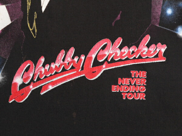 90s USA製 ★ チャビー チェッカー イラスト プリント Tシャツ メンズ XXL 古着 黒 オールド バンド ロック グラフィック シングルステッチ