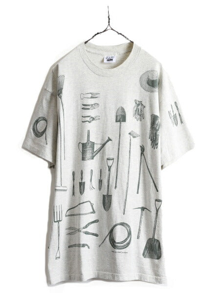 90s USA製 ★ rel e vant products 工具 オールオーバー プリント Tシャツ メンズ XL / 90年代 オールド アート 総柄 シングルステッチ 灰