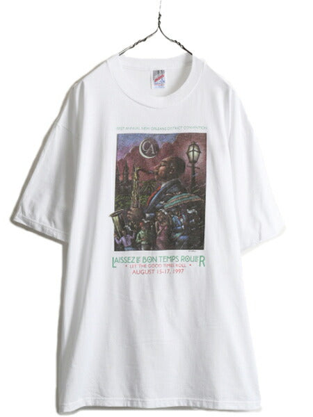 90s USA製 ★ ジャズ アート プリント Tシャツ ( メンズ XL ) 90年代 オールド JAZZ 芸術 イラスト シングルステッチ 白 ヘビーウェイト