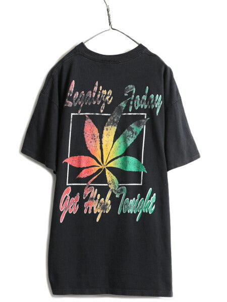90s USA製 ★ マリファナ 両面 プリント Tシャツ メンズ XL / 90年代 オールド 大麻 ガンジャ ヘビーウェイト メッセージ シングルステッチ