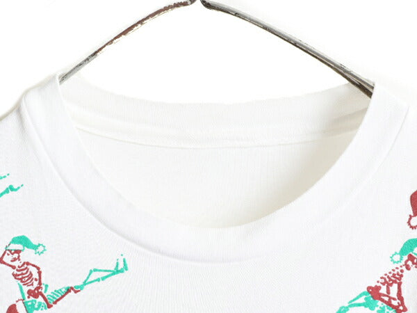 90s ★ FASHION VICTIM スカル 四十八手 イラスト 発泡 プリント Tシャツ メンズ L 程/ 90年代 オールド 当時物 アート エロ ドクロ SEX 白