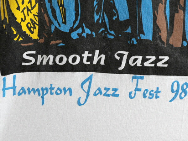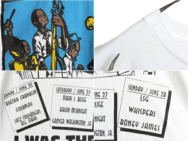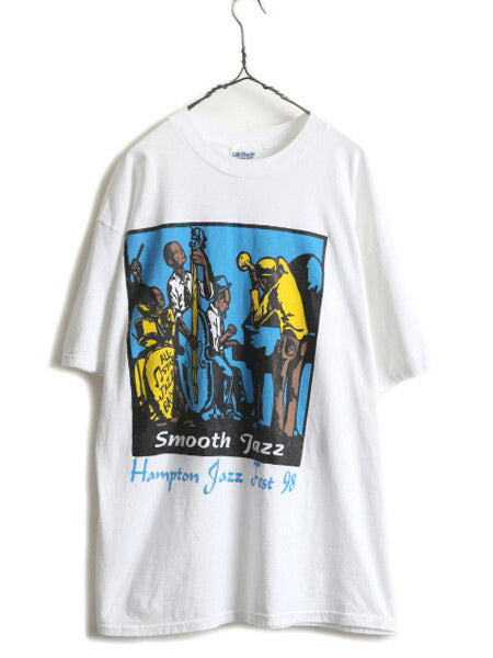 90s ★ ジャス フェスティバル アート イラスト 両面 プリント Tシャツ ( メンズ XL ) 古着 90年代 オールド JAZZ フェス 当時物 バンド 白