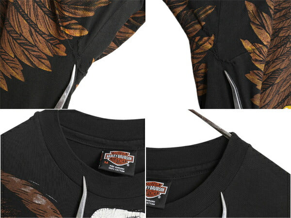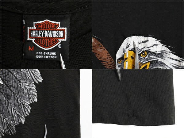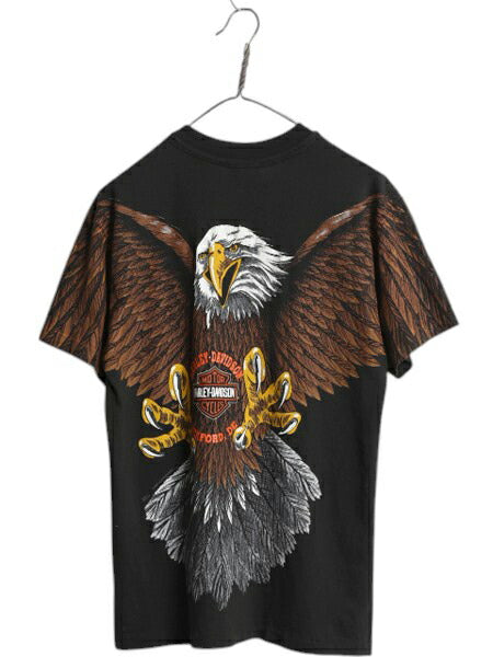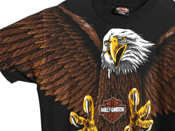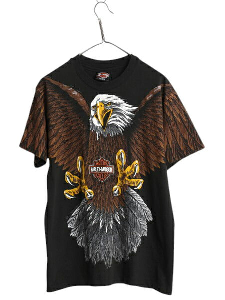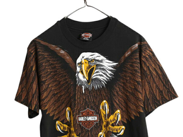 90s USA製 ★ ハーレー ダビットソン イーグル オーバー プリント Tシャツ メンズ M / 古着 当時物 イラスト グラフィック バイク 大判 黒