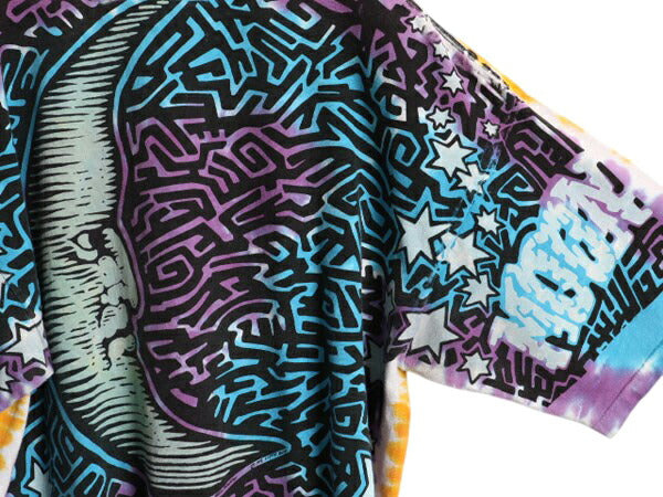 90s ★ リキッドブルー SUN&MOON タイダイ オールオーバー プリント Tシャツ メンズ XXL / 古着 当時物 オールド 大判 アート グラフィック