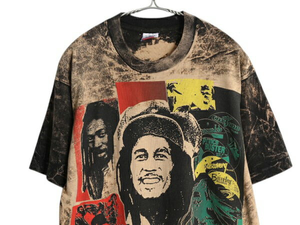 90s USA製 ★ ボブ マーリー タイダイ 大判 プリント Tシャツ メンズ L / 古着 オールド レゲエ ジャマイカ ラスタ バンド グラフィック 黒