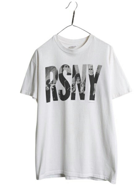 90s USA製 ★ ローリングストーンズ ダナキャラン パロディ ロゴ プリント Tシャツ メンズ L / 古着 オフィシャル 当時物 バンド ロック 白