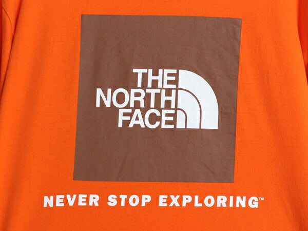 ノースフェイス 両面 プリント 長袖 Tシャツ メンズ M アウトドア ロンT ロングスリーブ カットソー バックプリント ボックスロゴ オレンジ