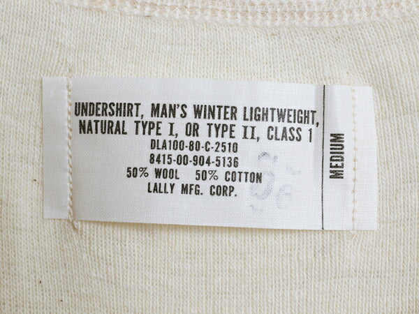 制式名称:UNDERSHIRT, MAN'S, WINTER LIGHTWEIGHT,