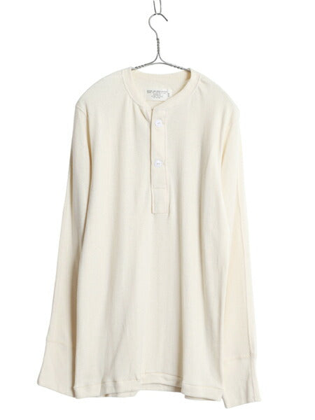 デッドストック 80s 米軍実物 US ARMY ヘンリーネック アンダーシャツ メンズ M 新品 80年製 ヴィンテージ 長袖 Tシャツ サーマル リブ編み