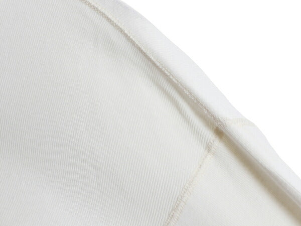 袖は段リブ、フラットシーマ縫製、裾はシングルステッチ