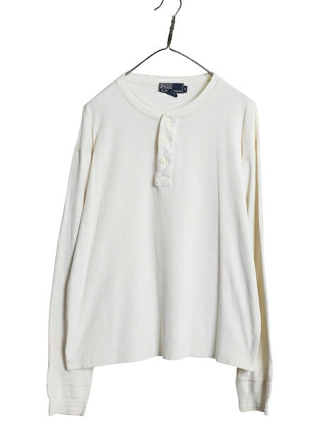 90s ポロ ラルフローレン ヘンリーネック 長袖 Tシャツ メンズ XL 古着 オールド ロンT リブ編み カットソー インナー 短丈 大きいサイズ