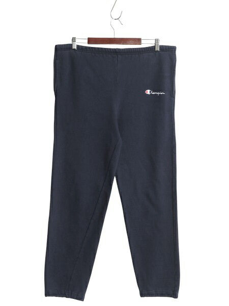 90s USA製 チャンピオン スウェット パンツ メンズ L 古着 オールド ポケット付き 裏起毛 スクリプト ロゴ ワンポイント ヘビーウェイト 紺