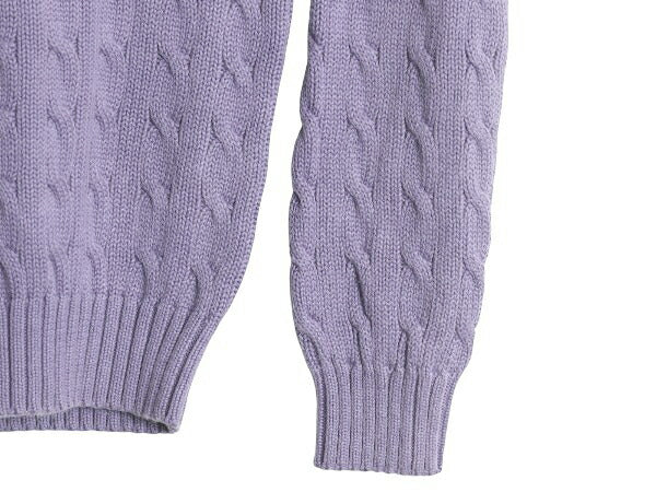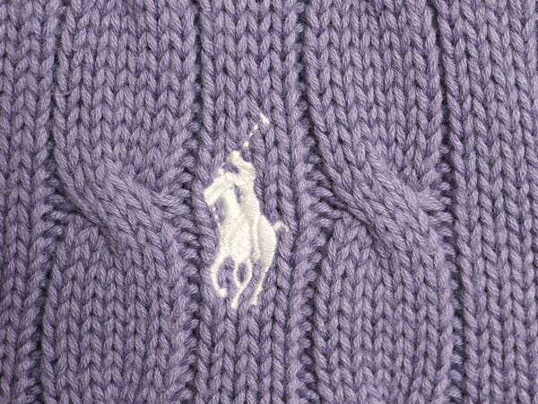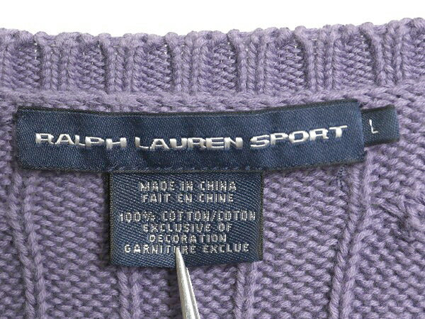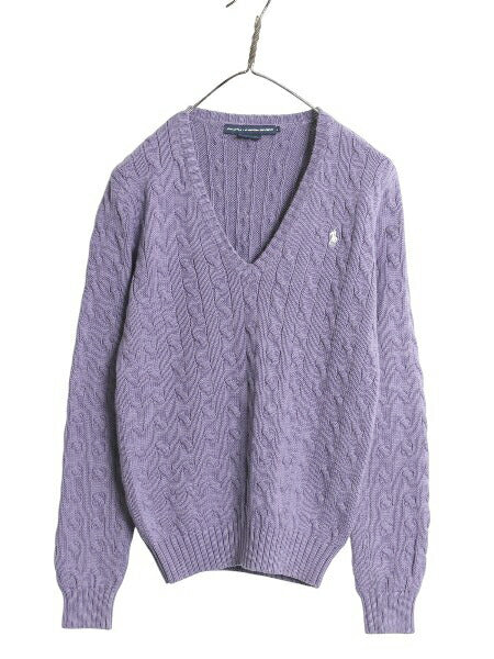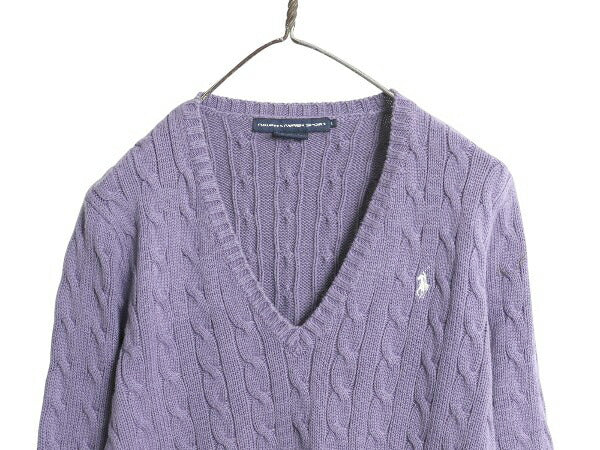 ラルフローレン コットン ケーブル ニット セーター レディース L / ポロ スポーツ 長袖ニット Vネック ワンポイント シンプル きれいめ 紫